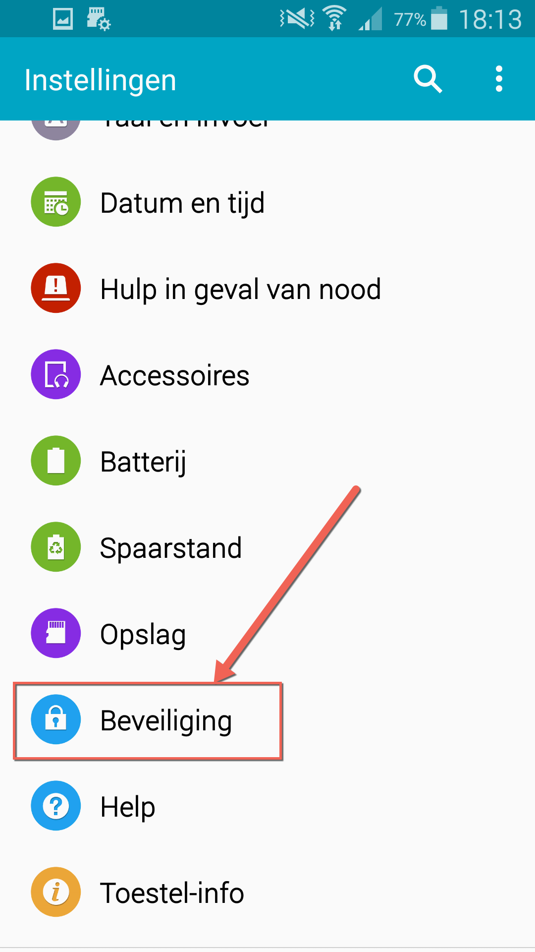 Ga naar instellingen (tandwieltje in bovenstaande screenshot) en ga naar beveiliging.