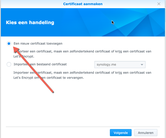 Kies vervolgens de optie Een nieuw certificaat toevoegen en klik op volgende.