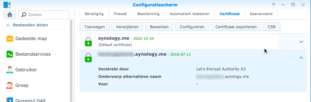 Kun je zien welk certificaat gebruikt wordt als je naar jou https://.synology.me gaat?