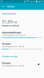 Je ziet nu dus twee keer SD-kaart terug. Een keer onder Apparaatopslag en een keer onder Draagbare opslag. De opslag onder Apparaatopslag is je Adoptable Storage, die je nu ook voor al je apps kunt inzetten.