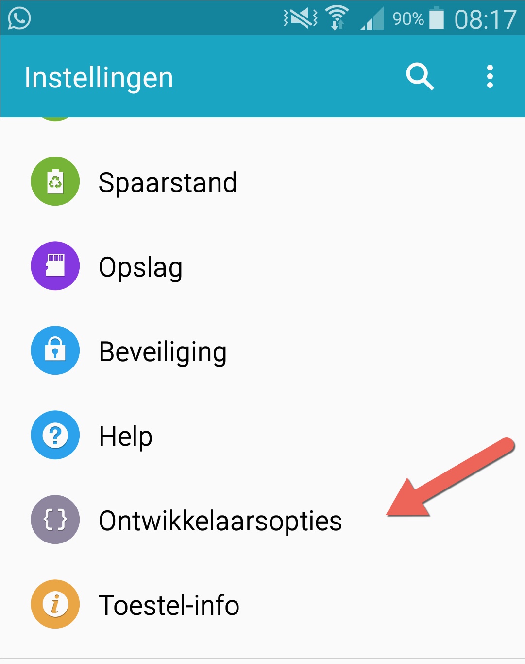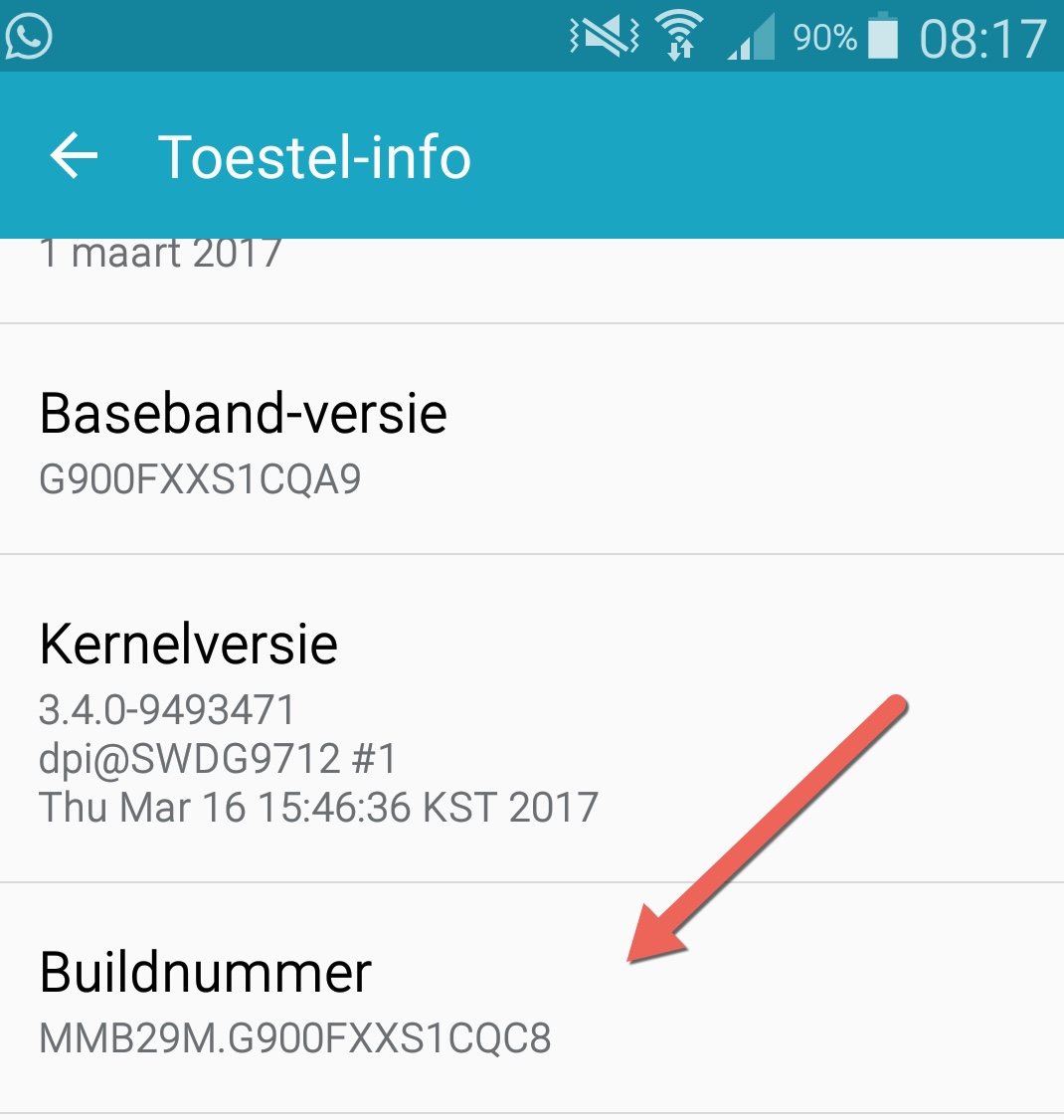 Alvorens je nu je telefoon aansluit op je pc, moet je op je telefoon het e.e.a. enablen. Eerst betreft dat de Ontwikkelaarsopties, indien die nog niet zichtbaar zijn in je instellingen menu. Hiervoor moet je eerst naar je instellingen en vervolgens naar Toestel-Info gaan.