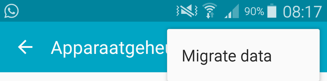 Om data naar je SD-kaart (van je apparaatopslag) te verplaatsen, druk je op SD-kaart. Vervolgens kun je rechtsboven bij de drie stipjes kiezen voor Migrate Data.